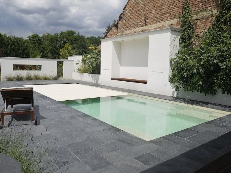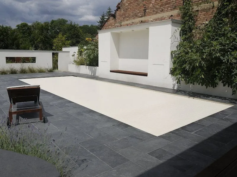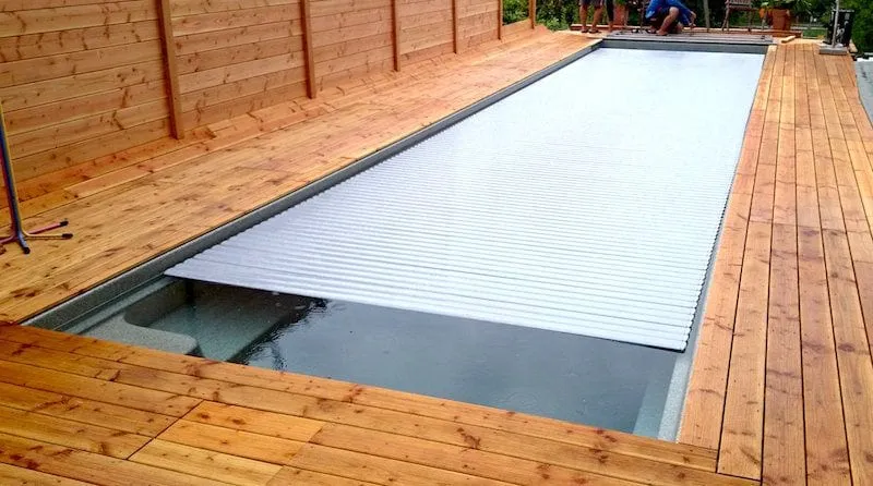 Compass Rollo je automatický lamelový kryt na bazény, který slouží k jejich bezpečnému uzavření a ochraně vody. Lamely jsou navinuté v zabudovaném prostoru a při otevření nebo zavření se elektricky vysouvají po hladině. Díky tomu kryt zamezuje padání nečistot do bazénu, omezuje únik tepla z vody a zároveň zvyšuje bezpečnost, protože je navržen tak, aby unesl váhu dítěte či domácího mazlíčka.