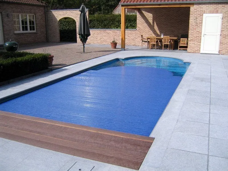 Compass Rollo je automatický lamelový kryt na bazény, který slouží k jejich bezpečnému uzavření a ochraně vody. Lamely jsou navinuté v zabudovaném prostoru a při otevření nebo zavření se elektricky vysouvají po hladině. Díky tomu kryt zamezuje padání nečistot do bazénu, omezuje únik tepla z vody a zároveň zvyšuje bezpečnost, protože je navržen tak, aby unesl váhu dítěte či domácího mazlíčka.